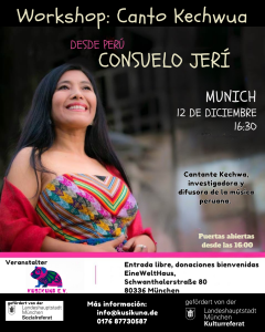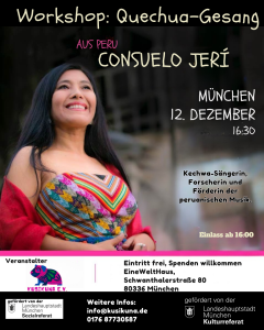 Am 12. Dezember hast du die Gelegenheit, das Singen auf Kechwa zu erlernen – in einer einzigartigen Masterclass mit der bekannten Sängerin Consuelo Jeri.